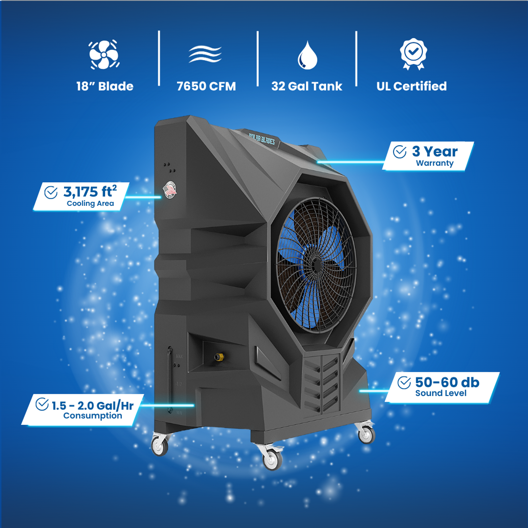 Best CFM to price ratio I found for cooling fans I needed at my warehouse so decided to go with 2 units of the Polar-Jet 36! Delivery was fast and easy to assemble. All we had to do was put the castors at the bottom, plug into a 110V outlet, fill up water and we were all set. The Jet-36 is a MONSTER. Cooled down my space within 30 minutes and surprisingly very quiet. Highly recommend going with Polar Blades in terms of overall build and quality of product. The service is good as well but it did take some time to ship and I needed these fans ASAP since it was getting hot. Happy with the investment!